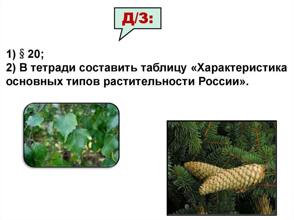 12. Задание: используя §20, заполнить таблицу «Характеристика основных типов растительности России».