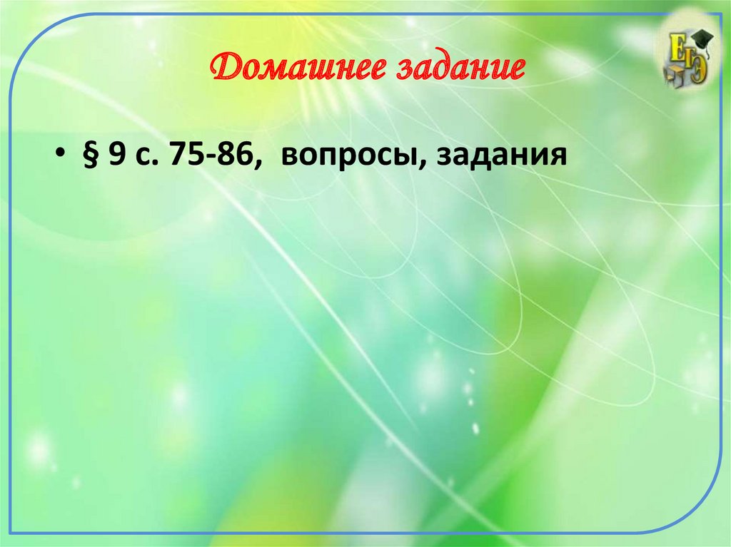 Домашнее задание• § 9 с. 75-86, вопросы, задания
