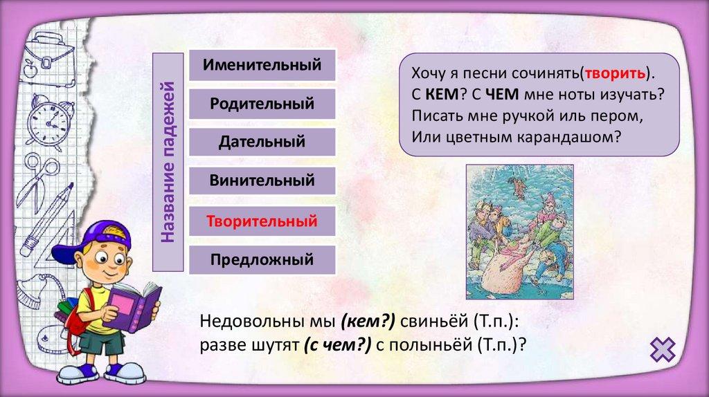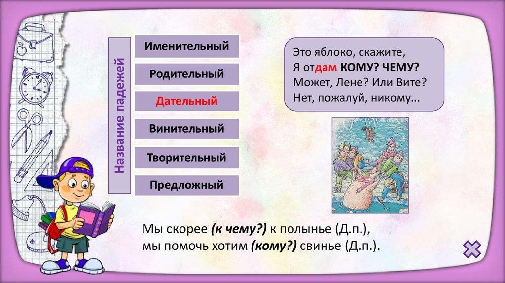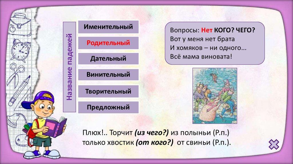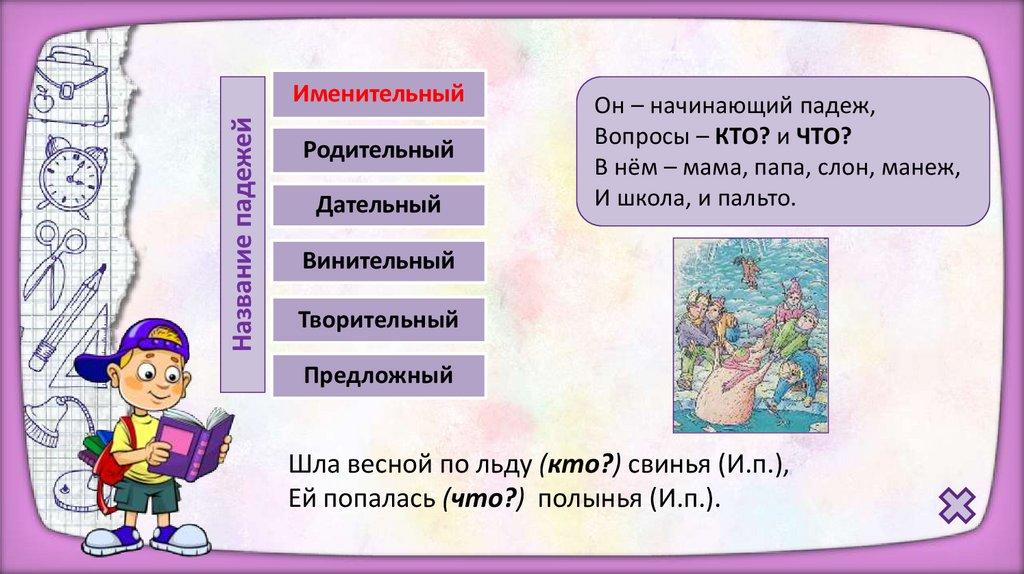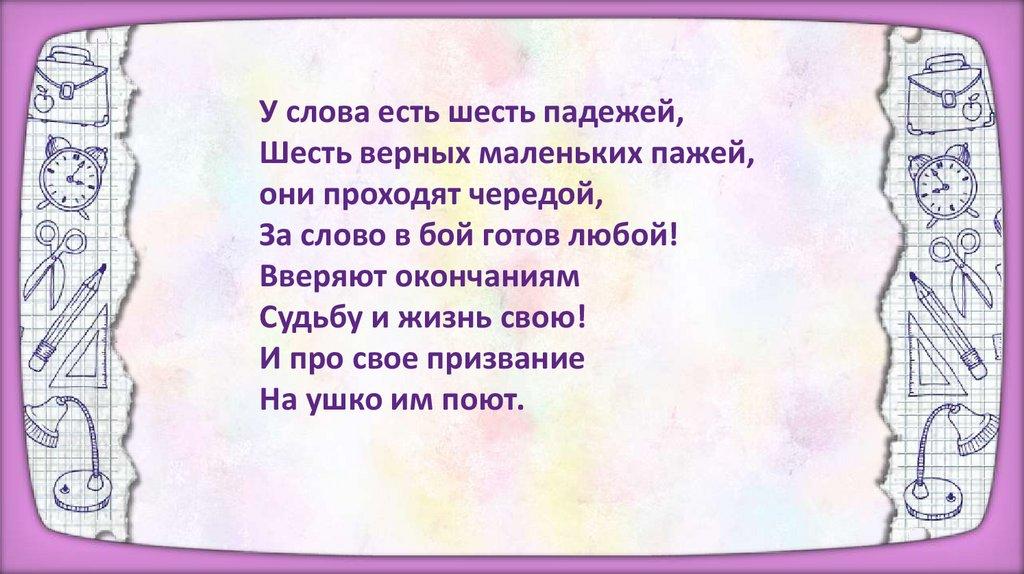 У слова есть шесть падежей,Шесть верных маленьких пажей,
