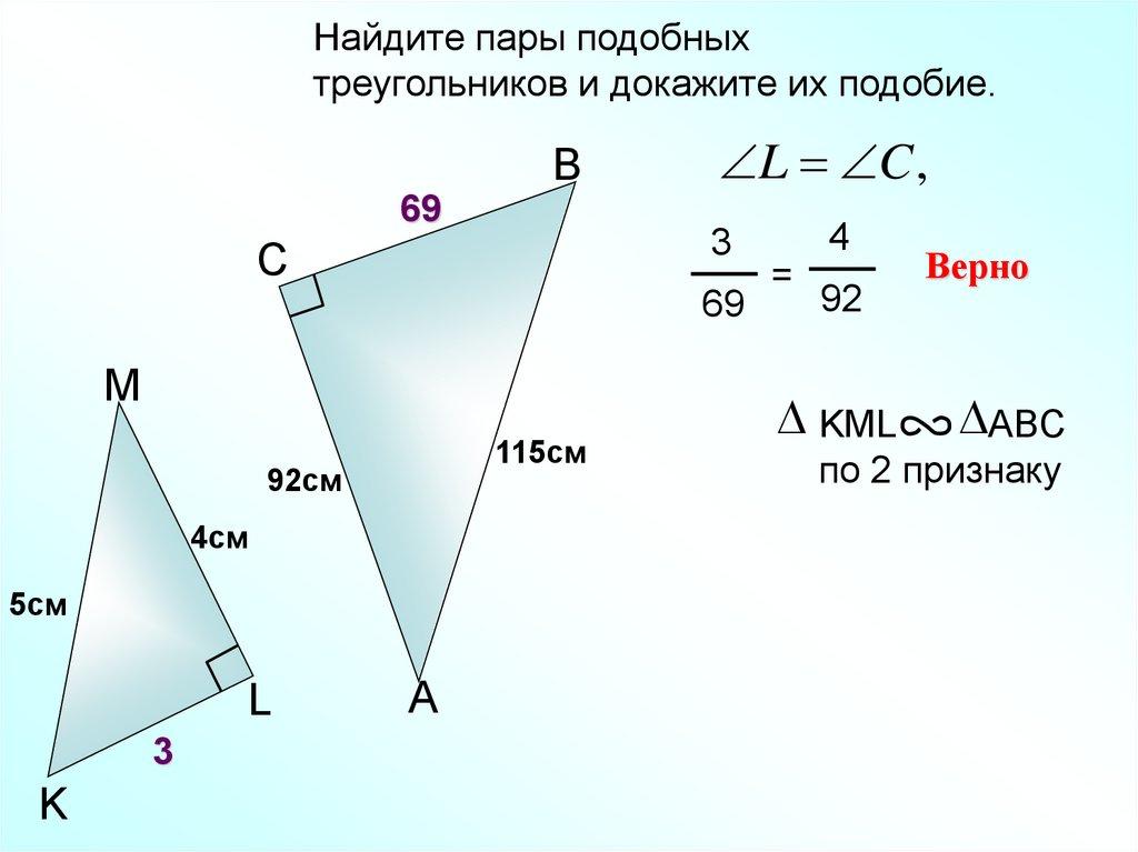 Найдите пары подобныхтреугольников и докажите их подобие.