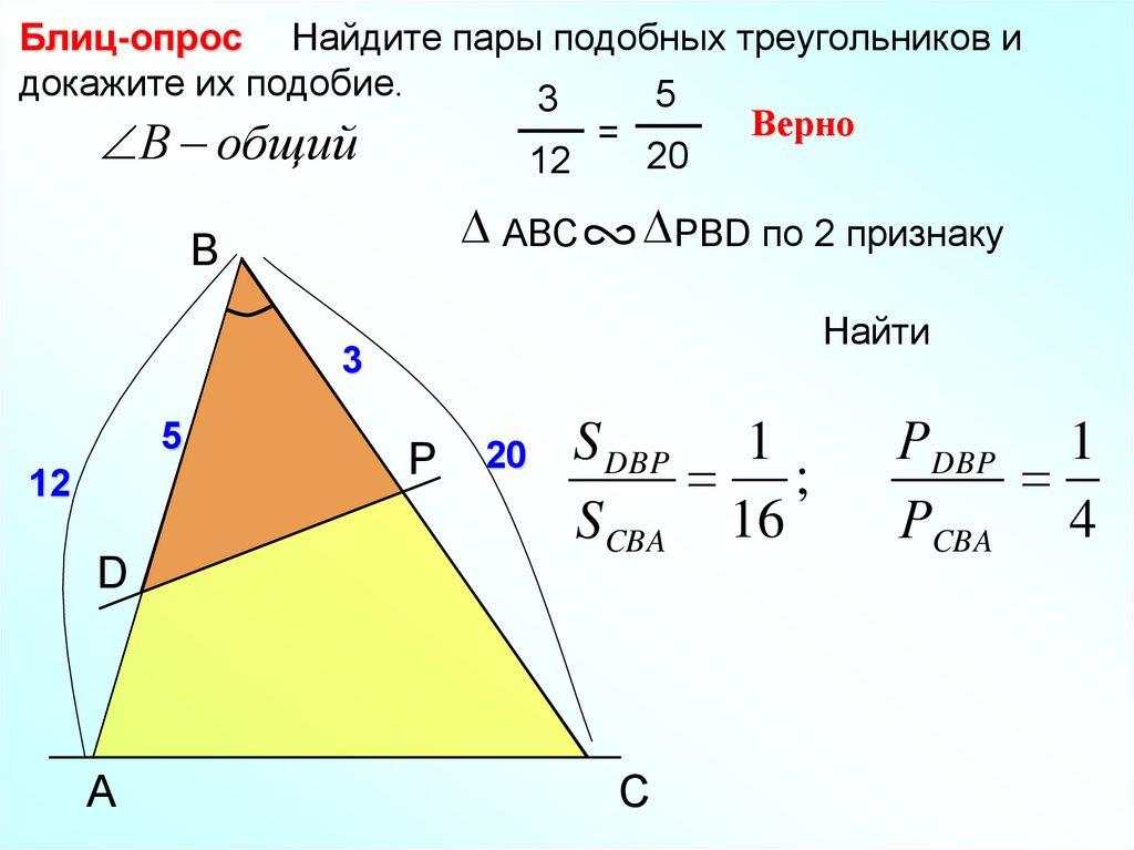 Блиц-опрос Найдите пары подобных треугольников идокажите их подобие.