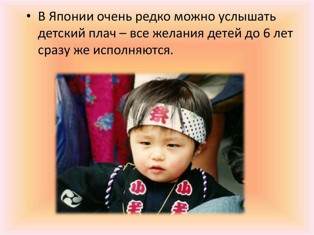 • В Японии очень редко можно услышатьдетский плач – все желания детей до 6 лет