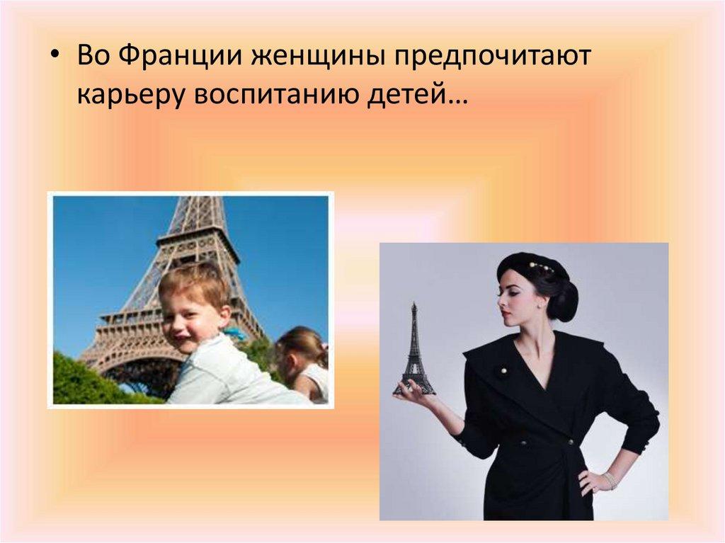 • Во Франции женщины предпочитаюткарьеру воспитанию детей…