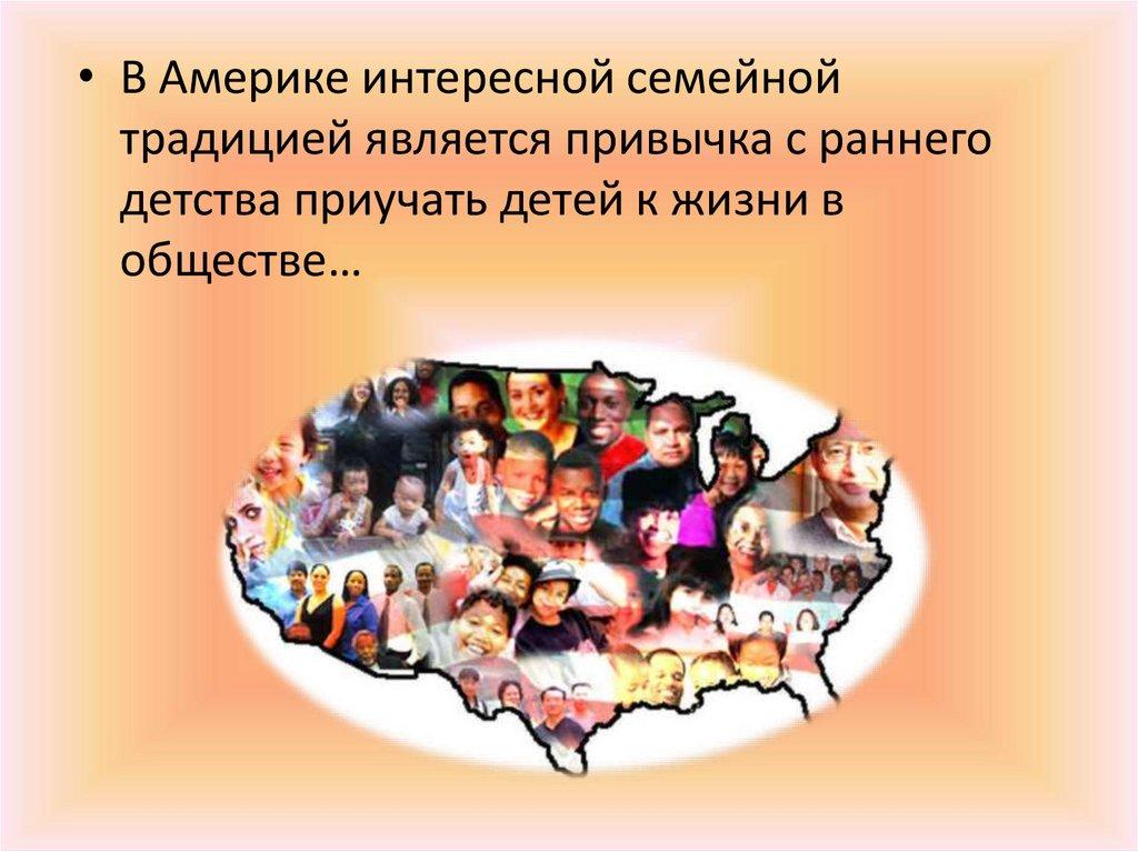 • В Америке интересной семейнойтрадицией является привычка с раннего
