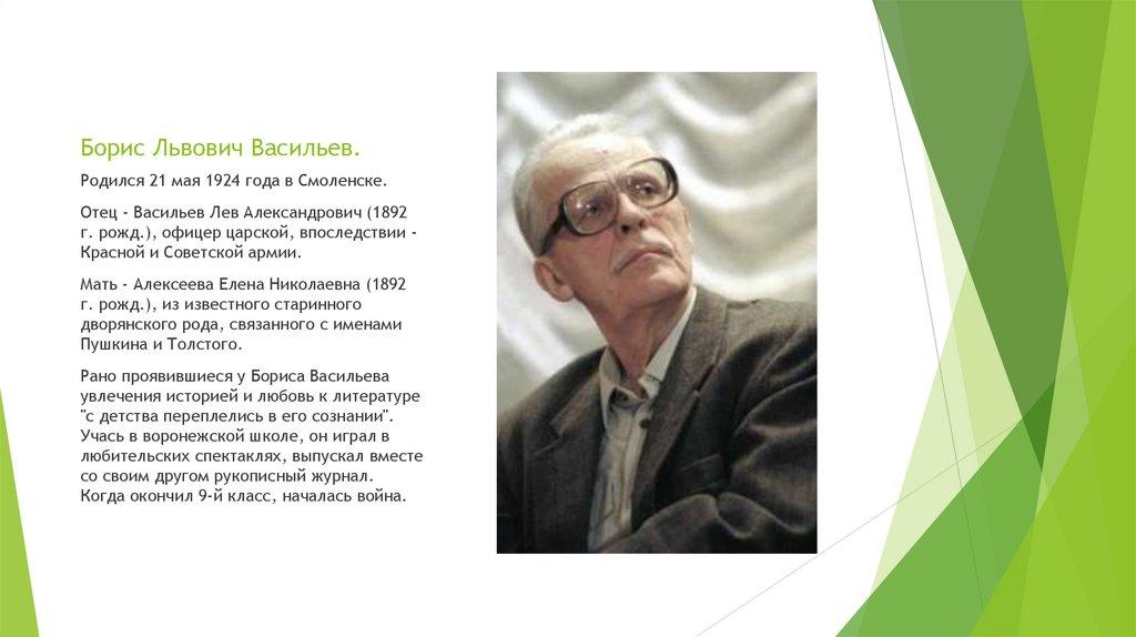 Борис Львович Васильев.Родился 21 мая 1924 года в Смоленске.
