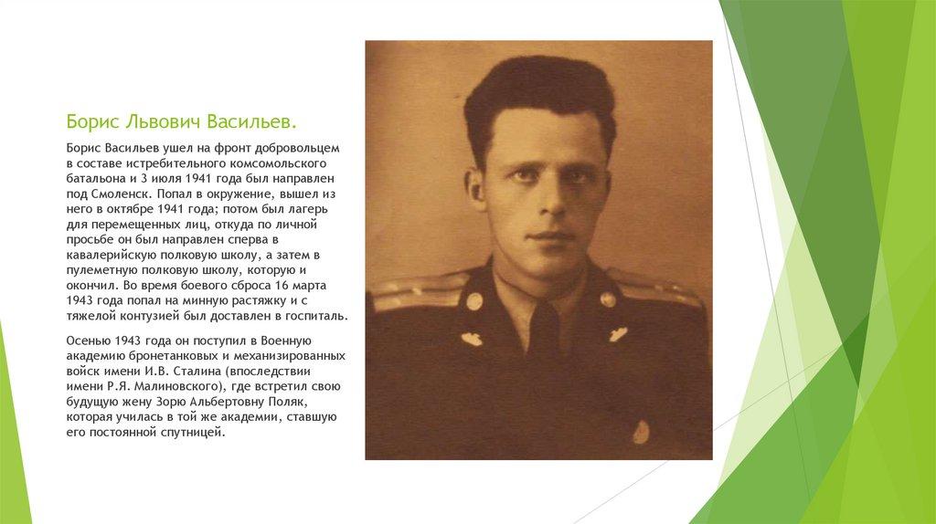 Борис Львович Васильев.Борис Васильев ушел на фронт добровольцем