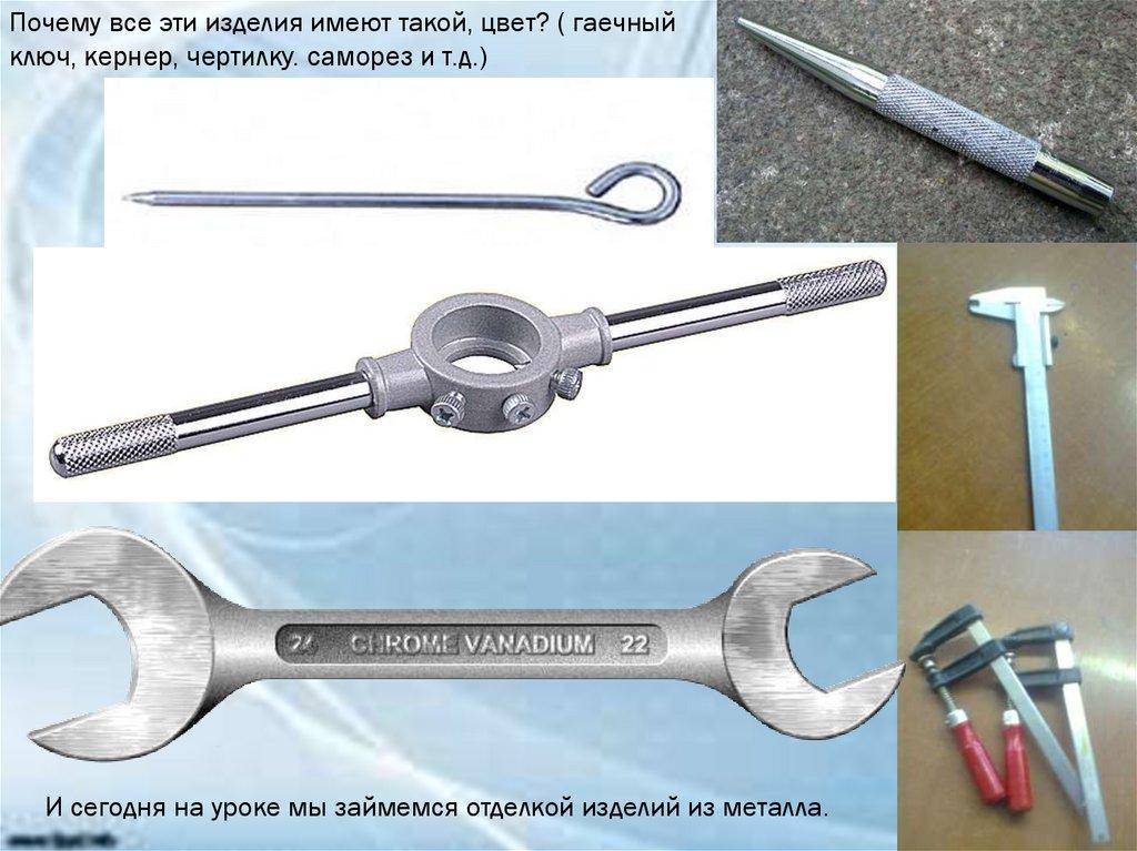 Почему все эти изделия имеют такой, цвет? ( гаечныйключ, кернер, чертилку. саморез и т.д.)