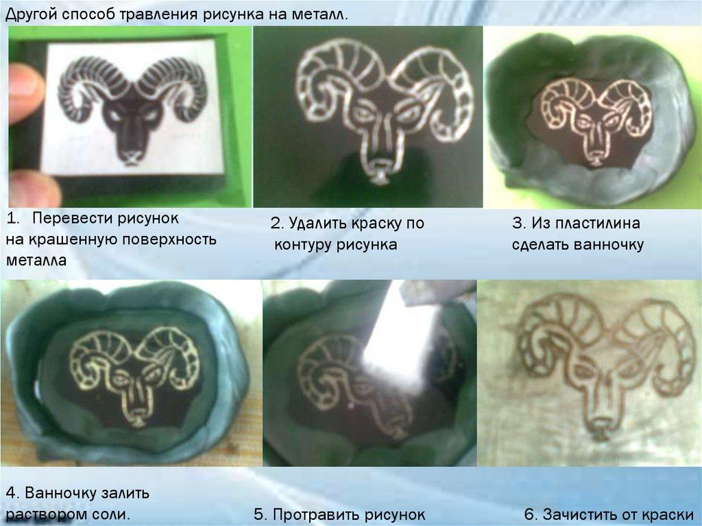 Другой способ травления рисунка на металл.1. Перевести рисунок