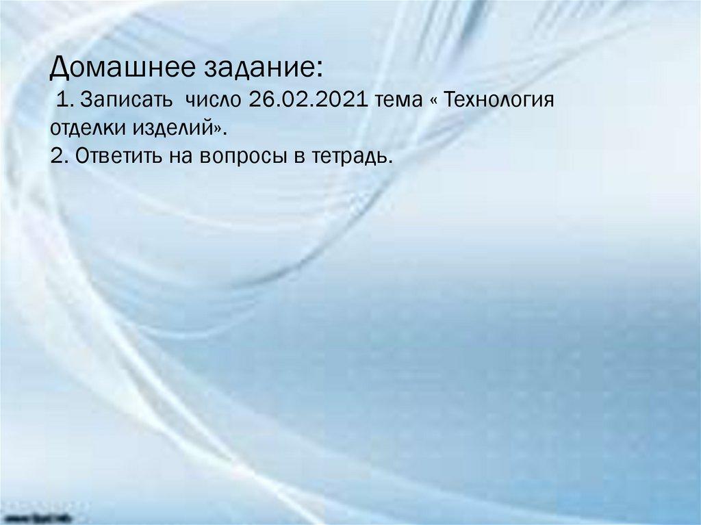 Домашнее задание:1. Записать число 26.02.2021 тема « Технология