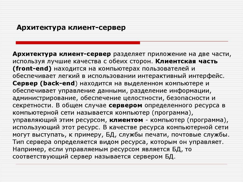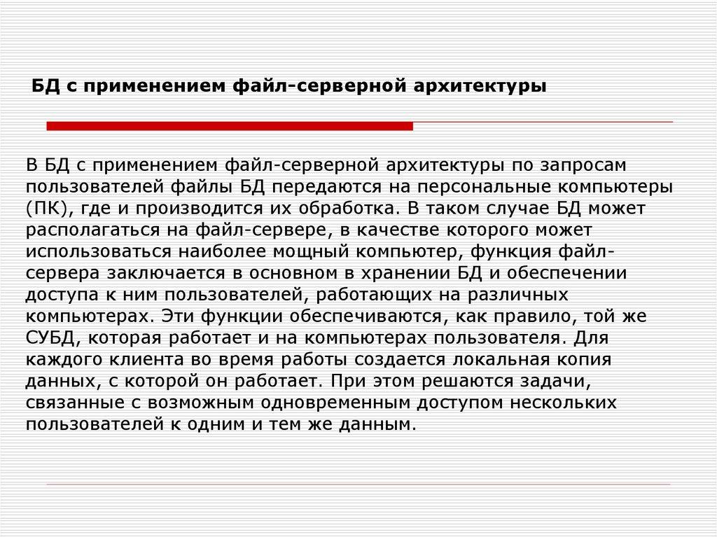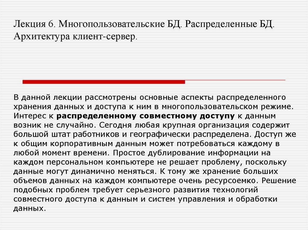 Лекция 6. Многопользовательские БД. Распределенные БД.Архитектура клиент-сервер.