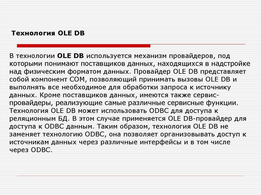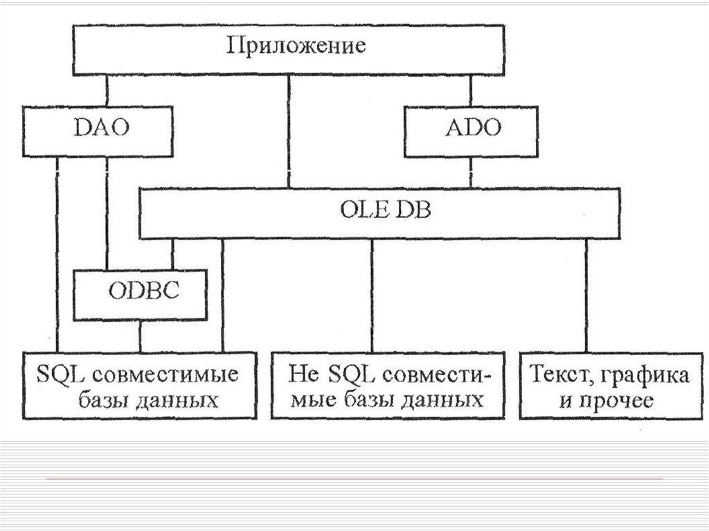 обеспечения возможности взаимосвязи между различными SQLсовместимыми БД, причем в этой технологии SQL используется как