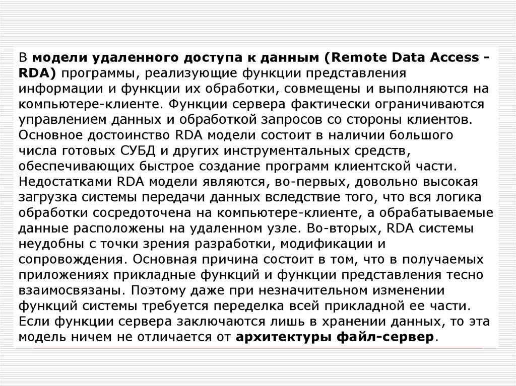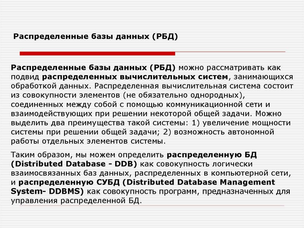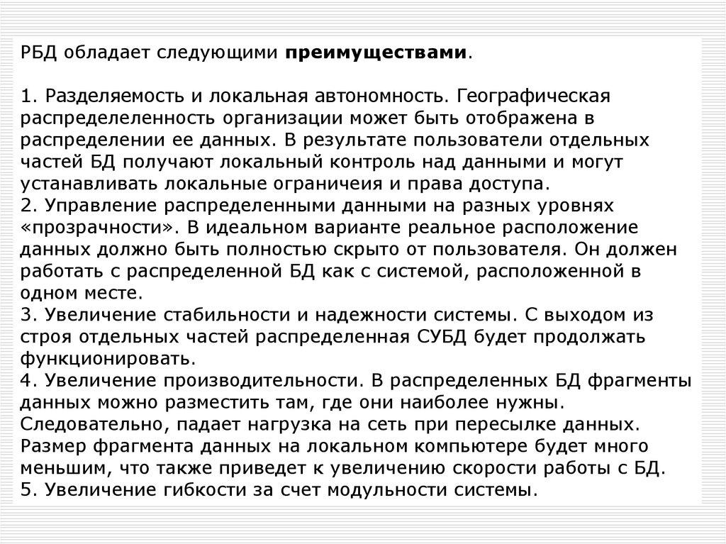 РБД обладает следующими преимуществами.1. Разделяемость и локальная автономность. Географическая