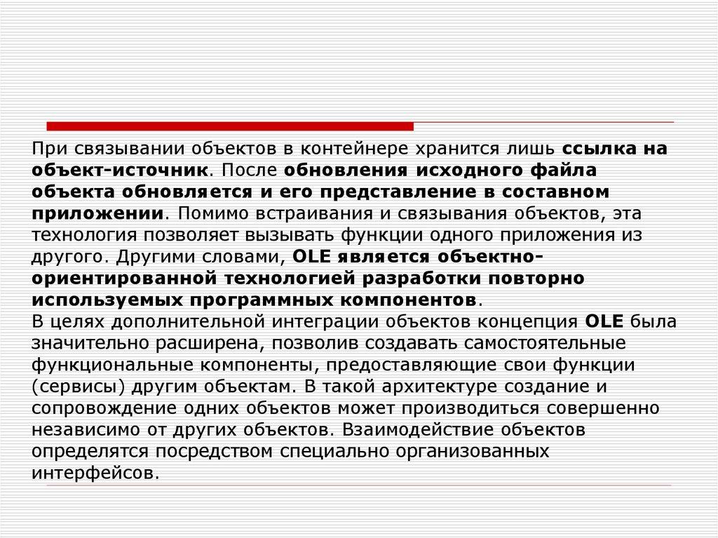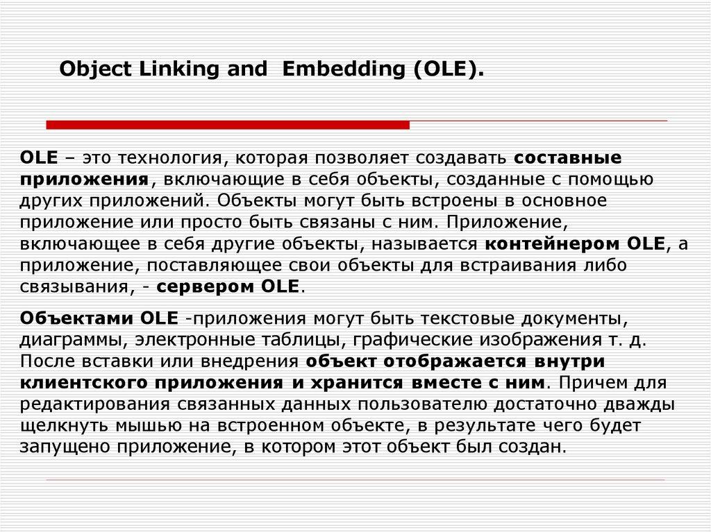Object Linking and Embedding (OLE).OLE – это технология, которая позволяет создавать составные