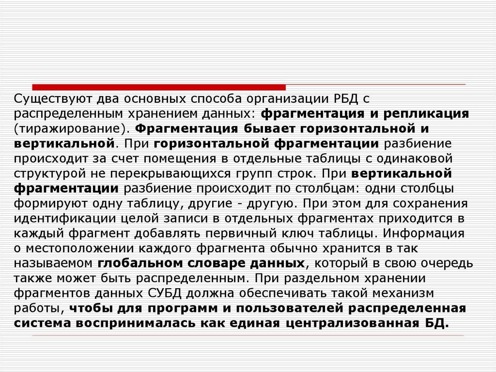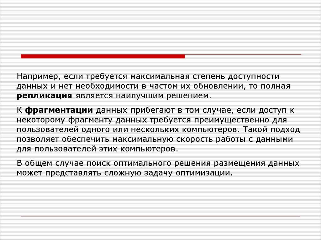 К фрагментации данных прибегают в том случае, если доступ к