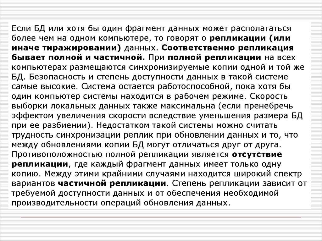 Противоположностью полной репликации является отсутствие