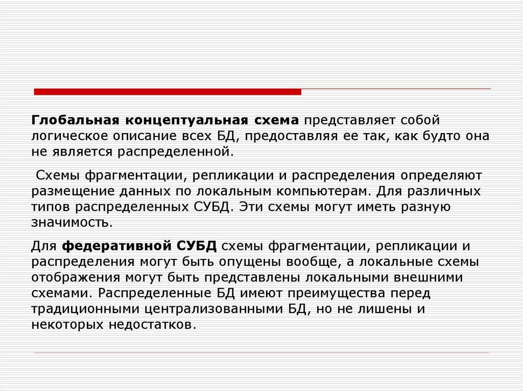 Федеративная СУБД поддерживает глобальную схему, на
