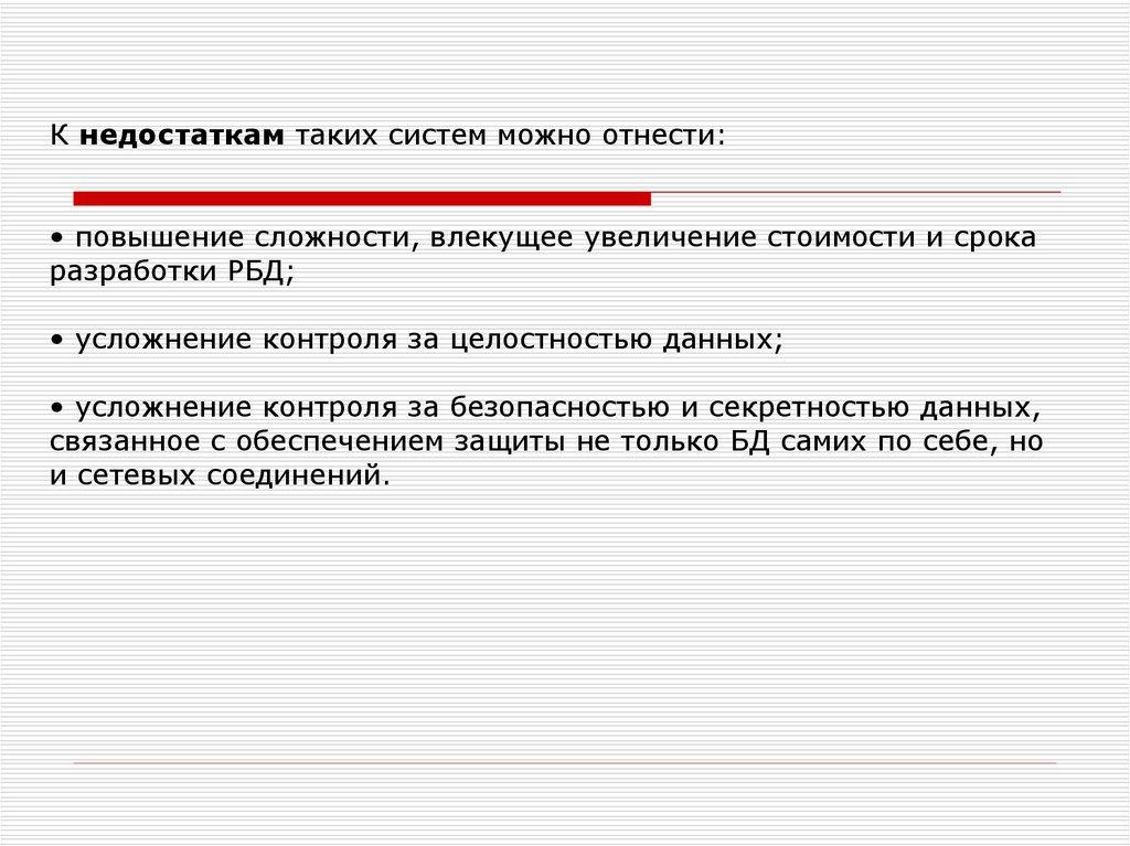 К недостаткам таких систем можно отнести:• повышение сложности, влекущее увеличение стоимости и срока