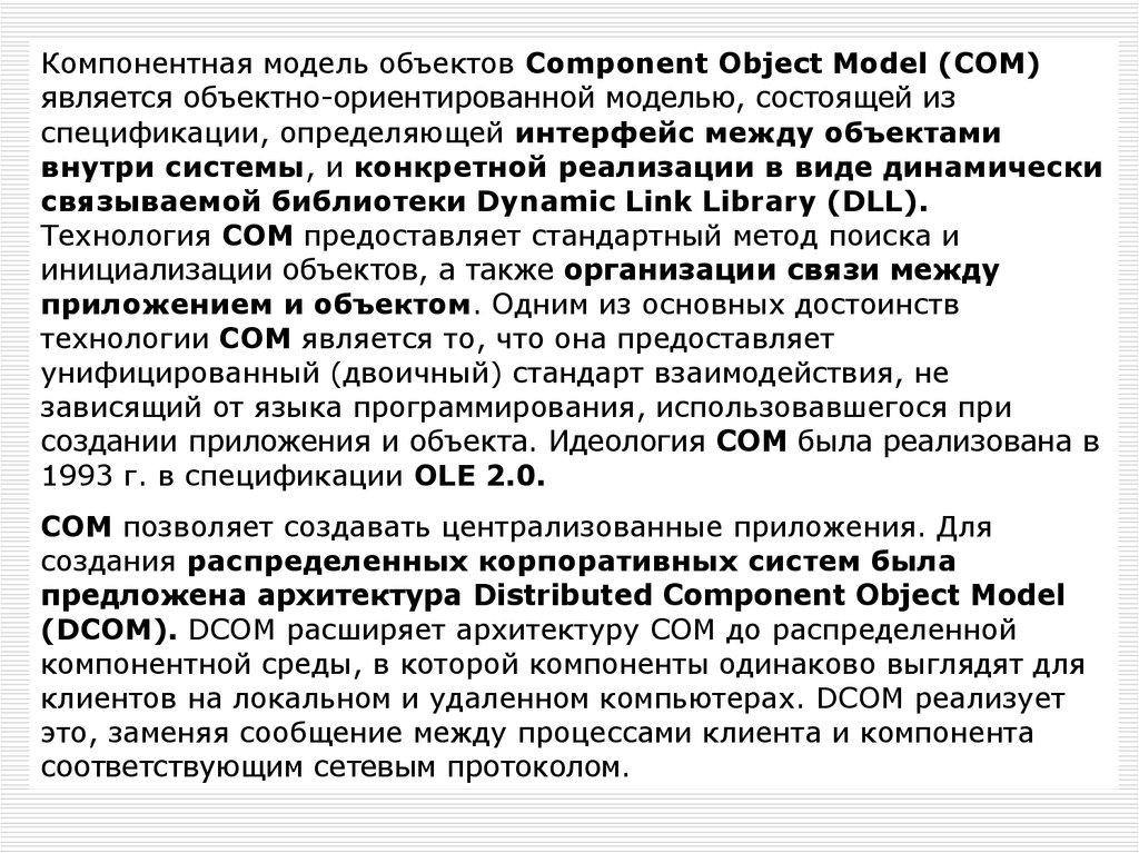 Компонентная модель объектов Component Object Model (СОМ)является объектно-ориентированной моделью, состоящей из