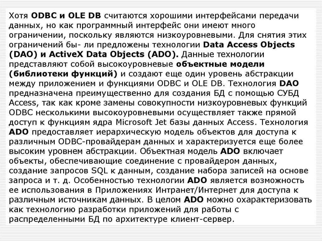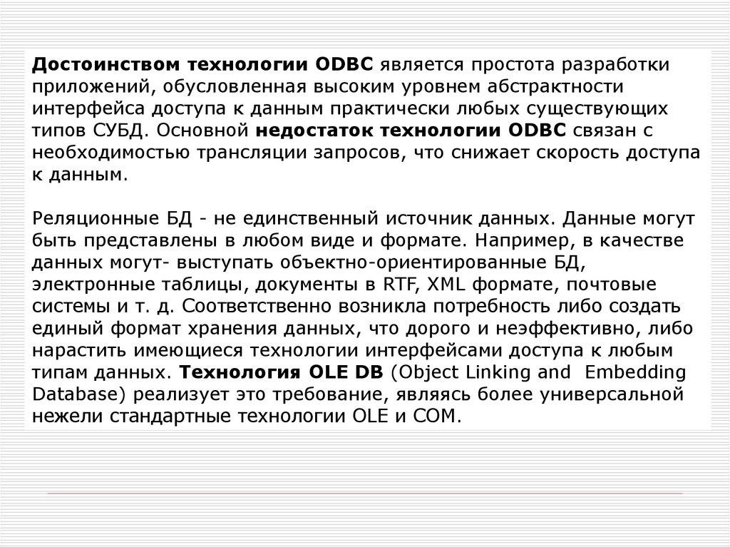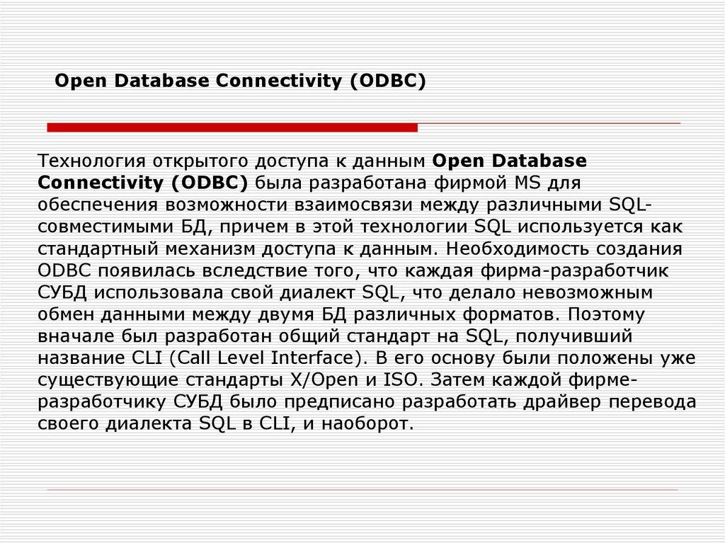 Open Database Connectivity (ODBC)Технология открытого доступа к данным Open Database