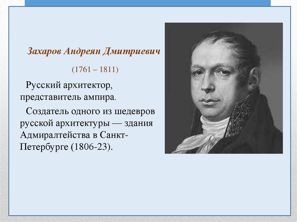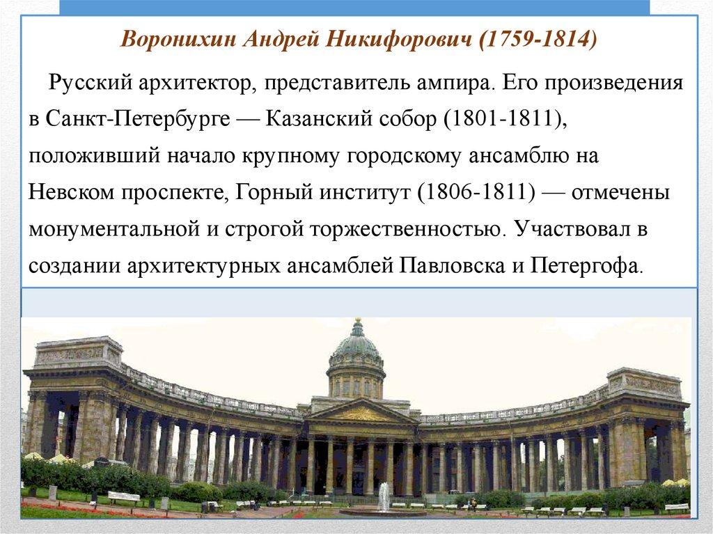 Воронихин Андрей Никифорович (1759-1814)Русский архитектор, представитель ампира. Его произведения