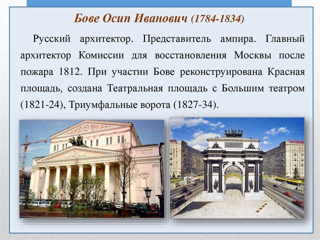 Бове Осип Иванович (1784-1834)Русский архитектор. Представитель ампира. Главный