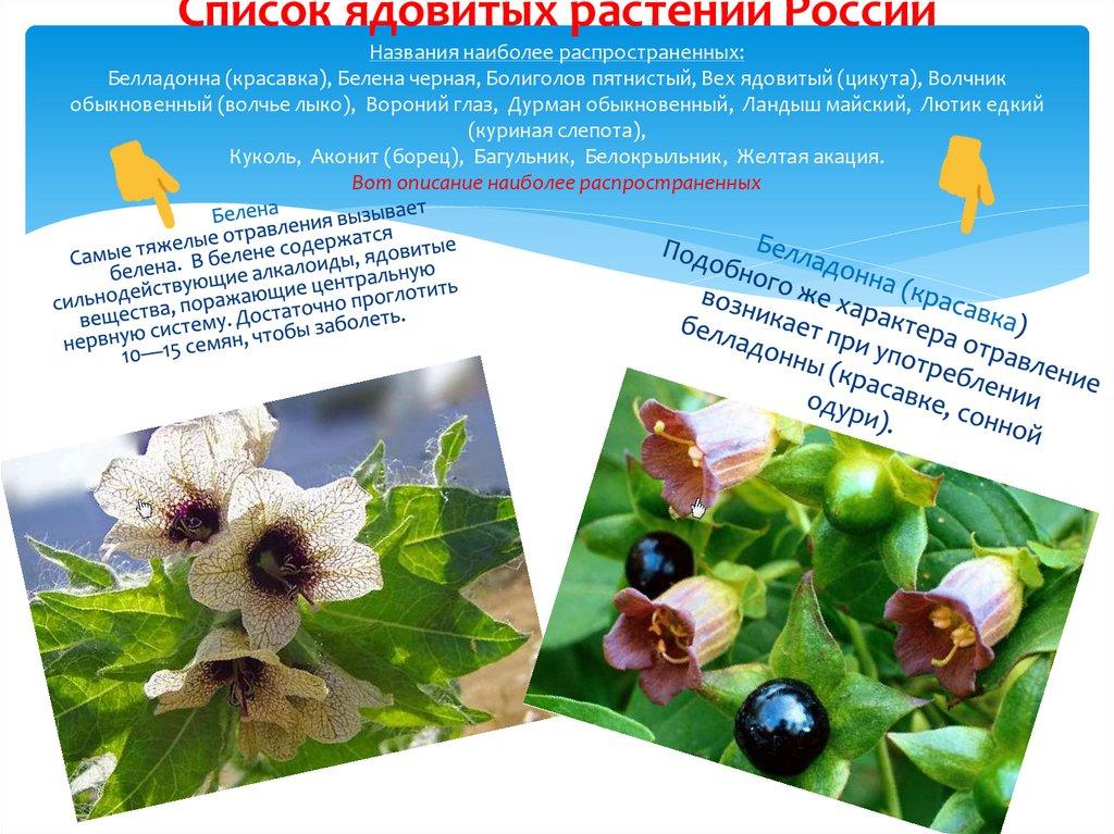 Список ядовитых растений РоссииНазвания наиболее распространенных: