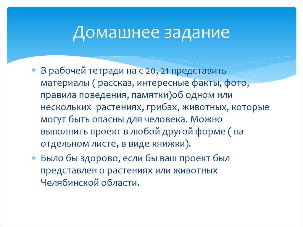 Домашнее заданиеВ рабочей тетради на с 20, 21 представить