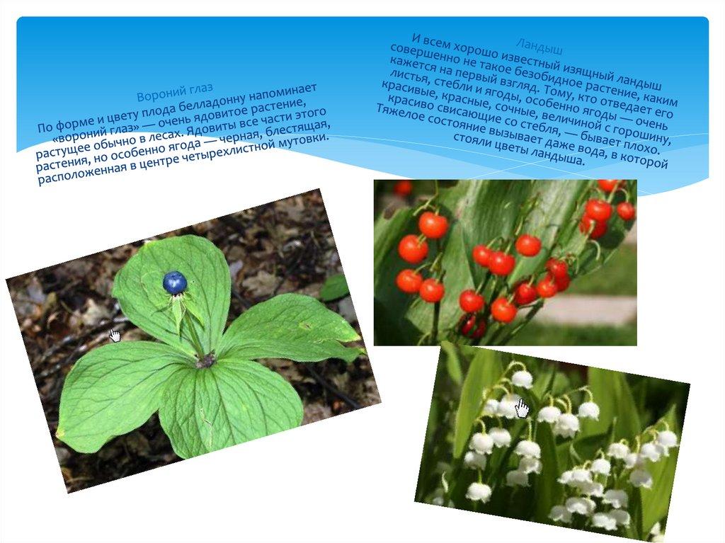 обыкновенный (волчье лыко), Вороний глаз, Дурман обыкновенный, Ландыш майский, Лютик едкий