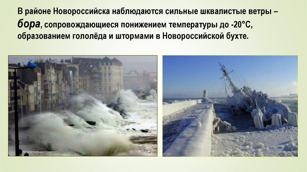 образованием гололёда и штормами в Новороссийской бухте.