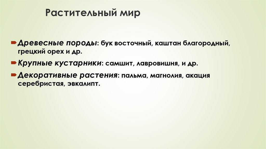 Растительный мирДревесные породы: бук восточный, каштан благородный,