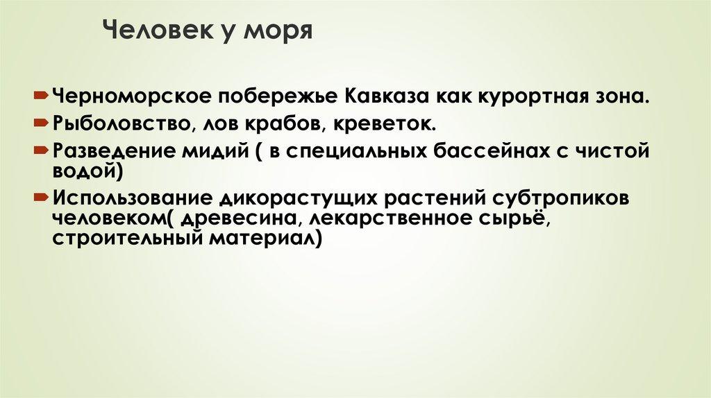 Человек у моряЧерноморское побережье Кавказа как курортная зона.