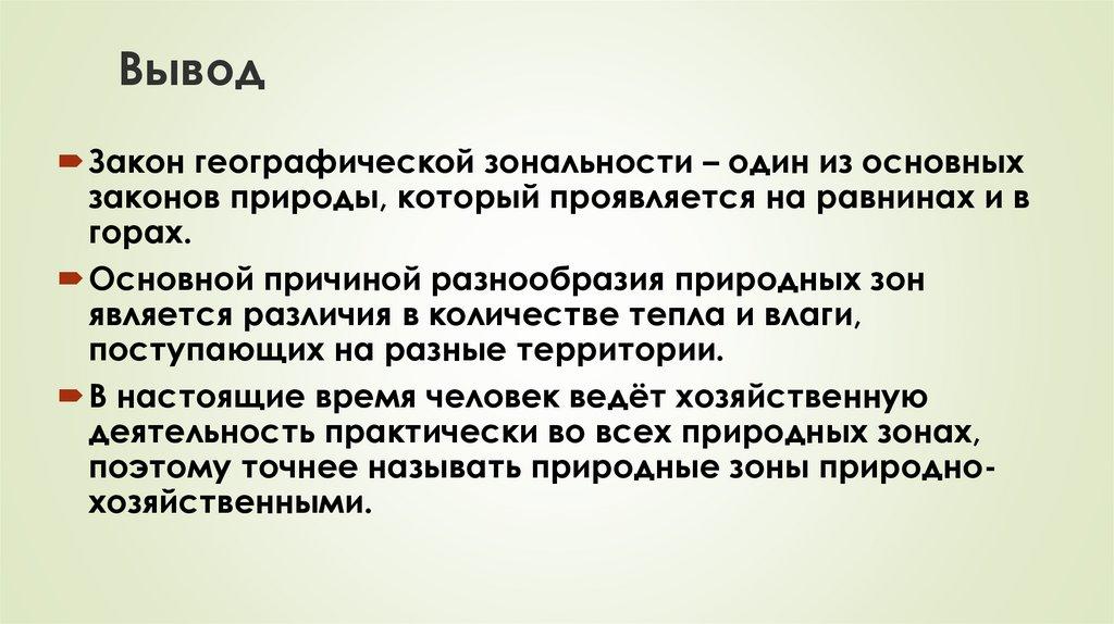 ВыводЗакон географической зональности – один из основных