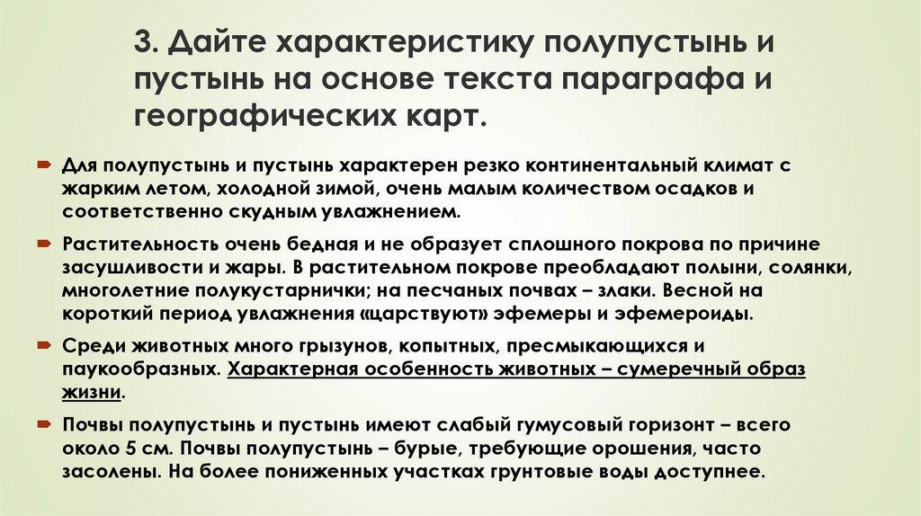 3. Дайте характеристику полупустынь ипустынь на основе текста параграфа и