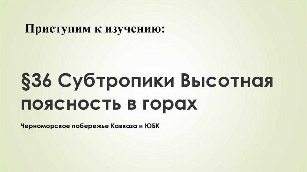 Приступим к изучению:§36 Субтропики Высотная
