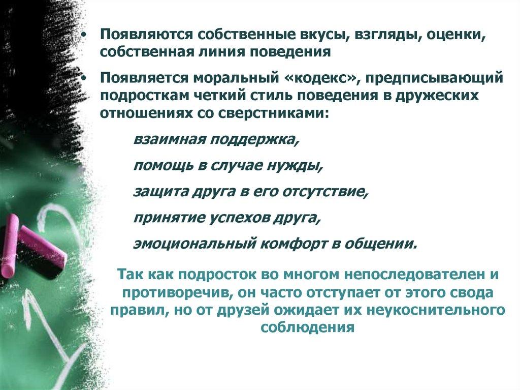 (на основе общих наблюдений подросток строит