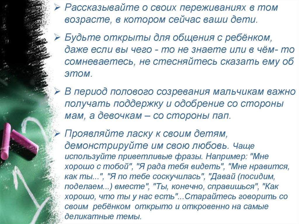 своим ребёнком открыто и откровенно на самые