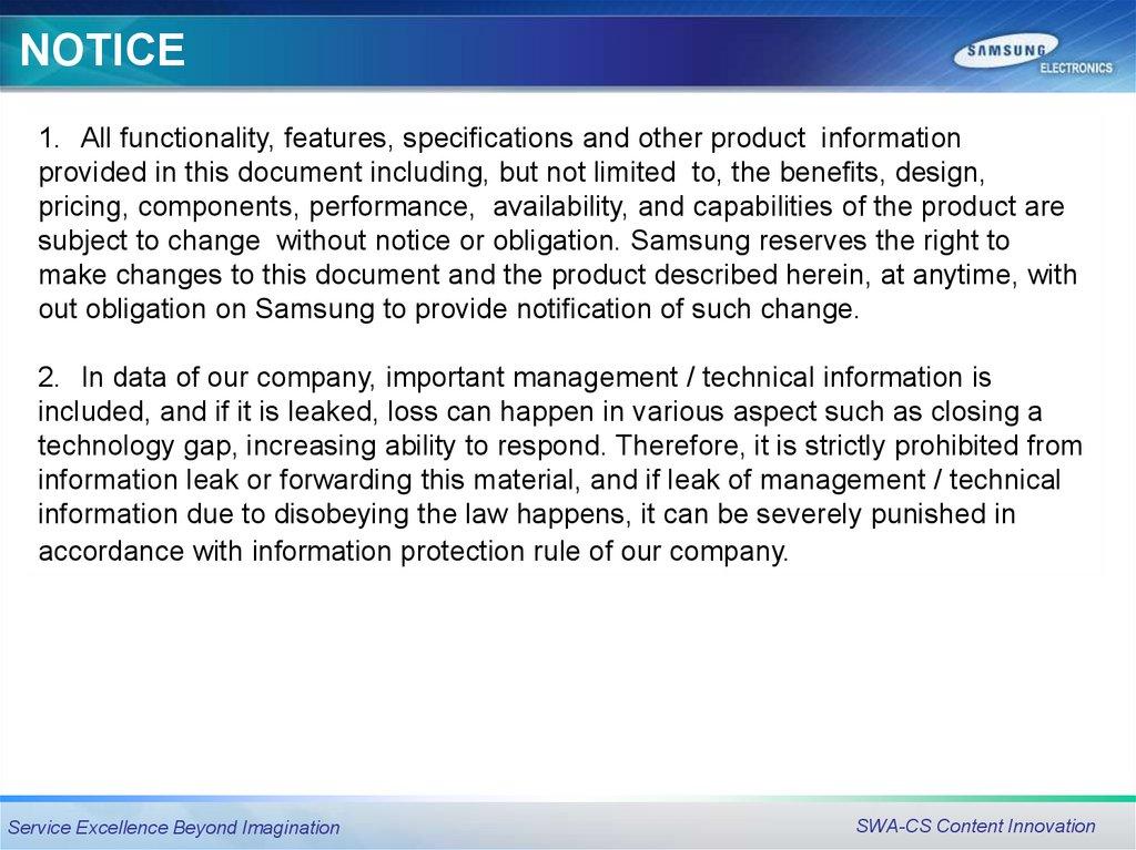 subject to change without notice or obligation. Samsung reserves the right to