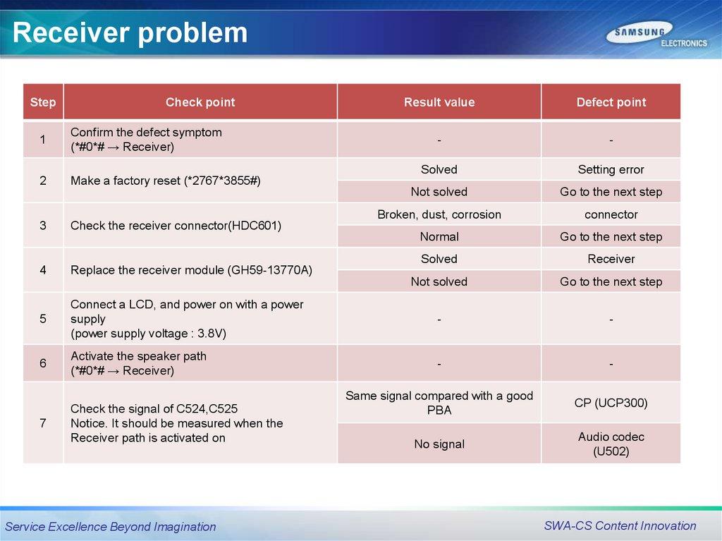Receiver problemStep