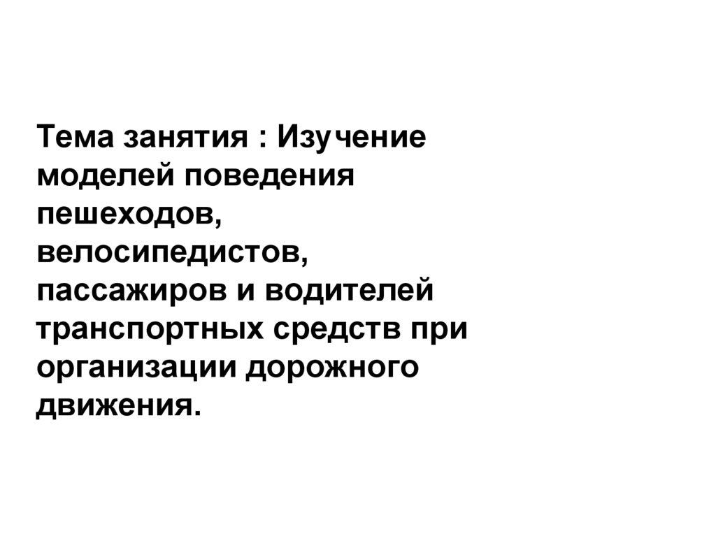 Изучение моделей поведения пешеходов, велосипедистов, пассажиров и водителей транспортных средств при организации дорожного движения