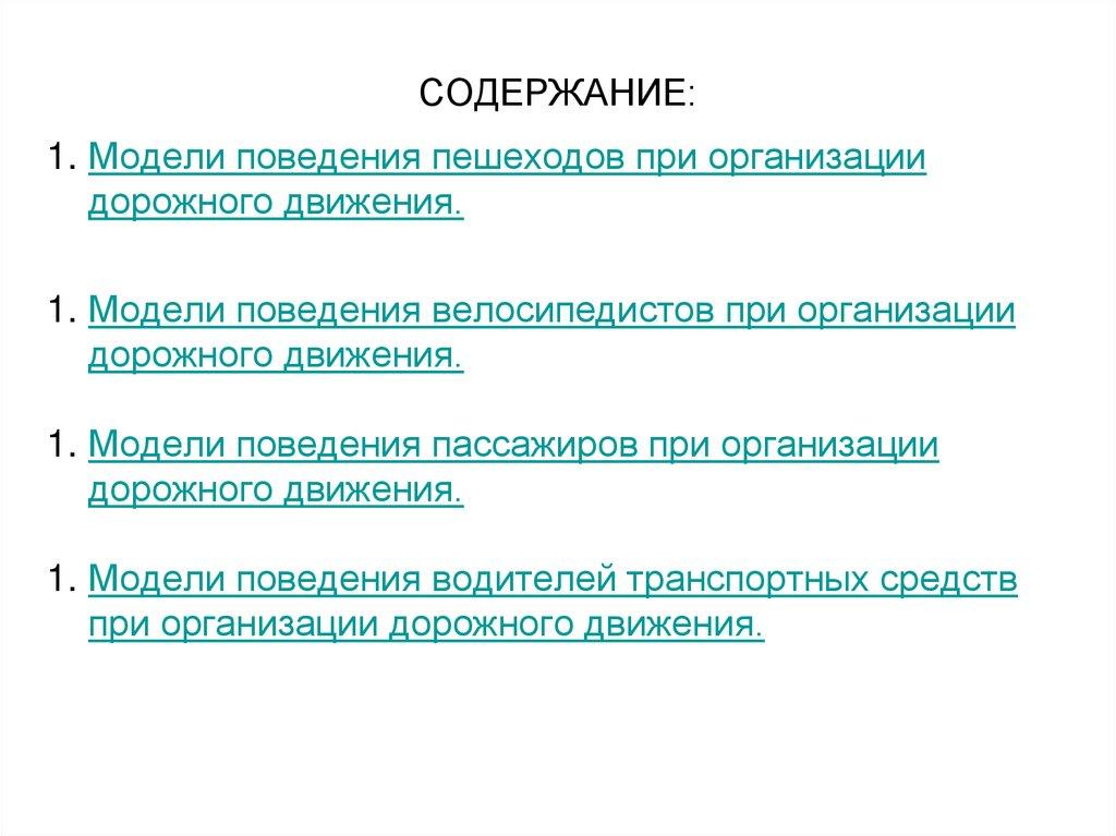 СОДЕРЖАНИЕ:1. Модели поведения пешеходов при организации
