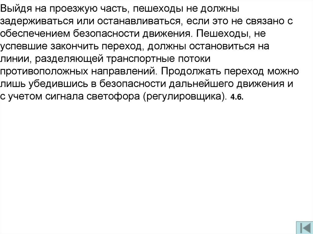 Выйдя на проезжую часть, пешеходы не должнызадерживаться или останавливаться, если это не связано с