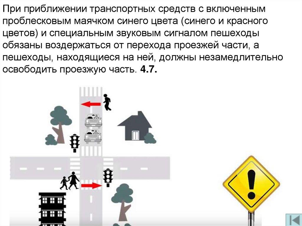 При приближении транспортных средств с включеннымпроблесковым маячком синего цвета (синего и красного