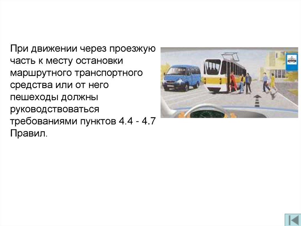 При движении через проезжуючасть к месту остановки