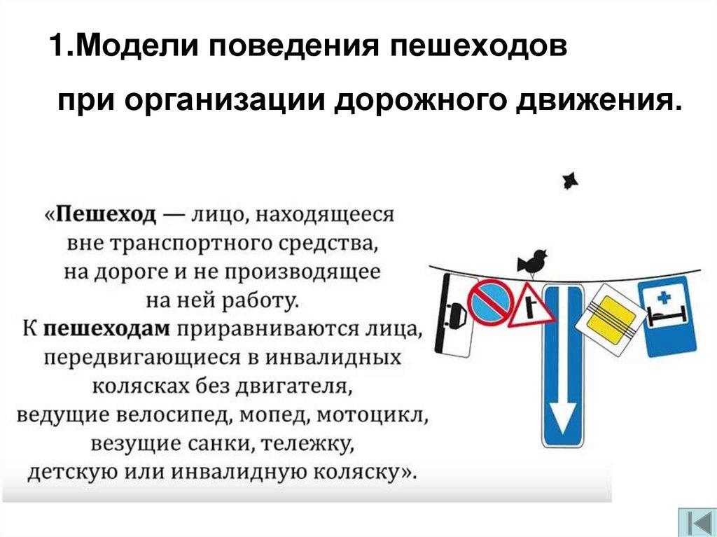 1.Модели поведения пешеходовпри организации дорожного движения.