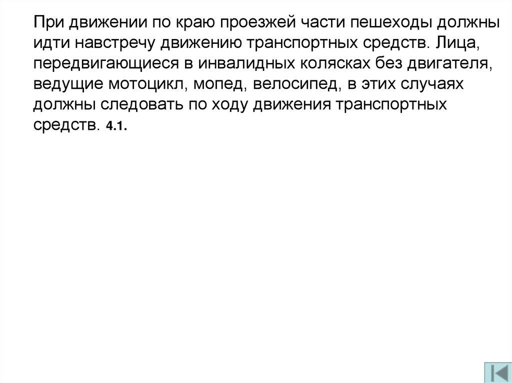 При движении по краю проезжей части пешеходы должныидти навстречу движению транспортных средств. Лица,