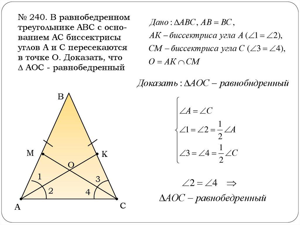 № 240. В равнобедренномтреугольнике АВС с основанием АС биссектрисы