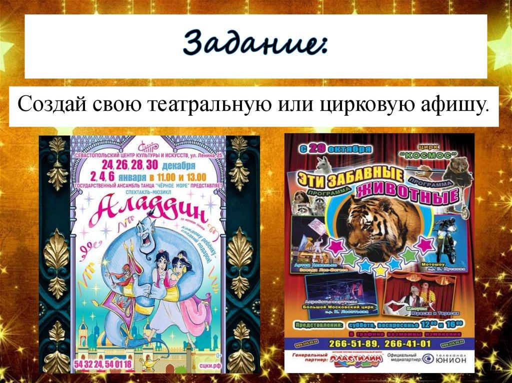 Создай свою театральную или цирковую афишу.10.