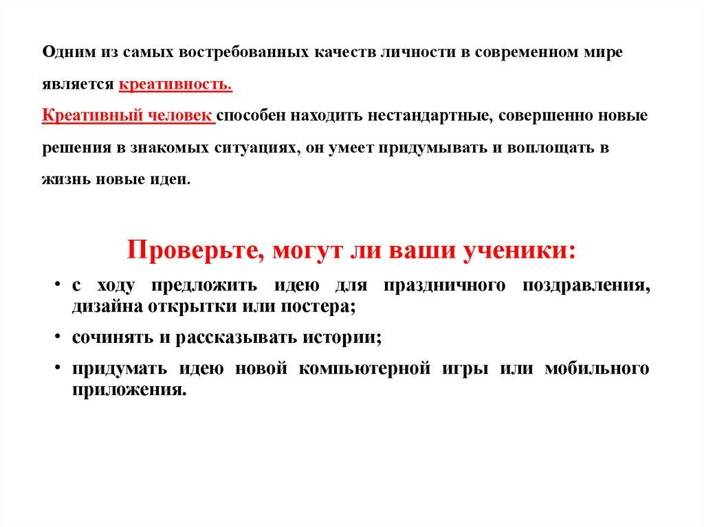 Одним из самых востребованных качеств личности в современном миреявляется креативность.