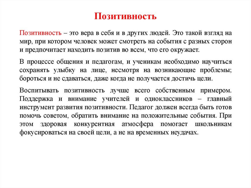 ПозитивностьПозитивность – это вера в себя и в других людей. Это такой взгляд на