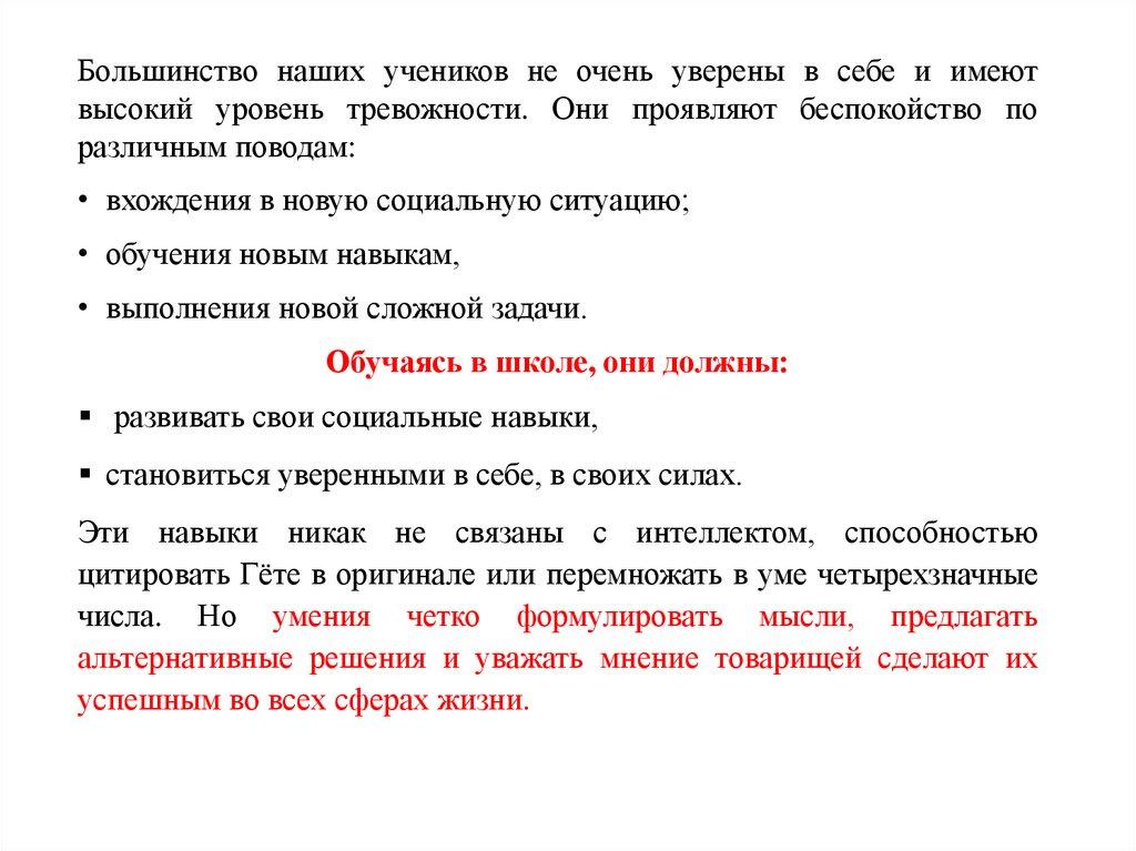 Большинство наших учеников не очень уверены в себе и имеютвысокий уровень тревожности. Они проявляют беспокойство по